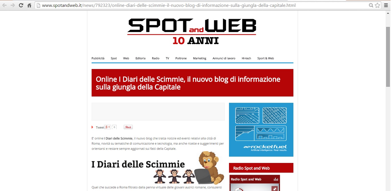 I Diari delle Scimmie su Spot and Web del 25 febbraio 2015