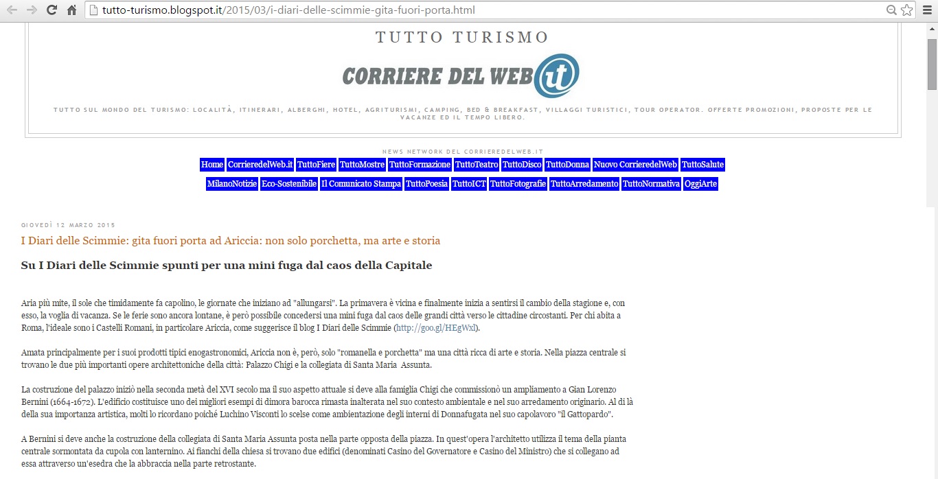 I Diari delle Scimmie su Tutto Turismo del 12 marzo 2015