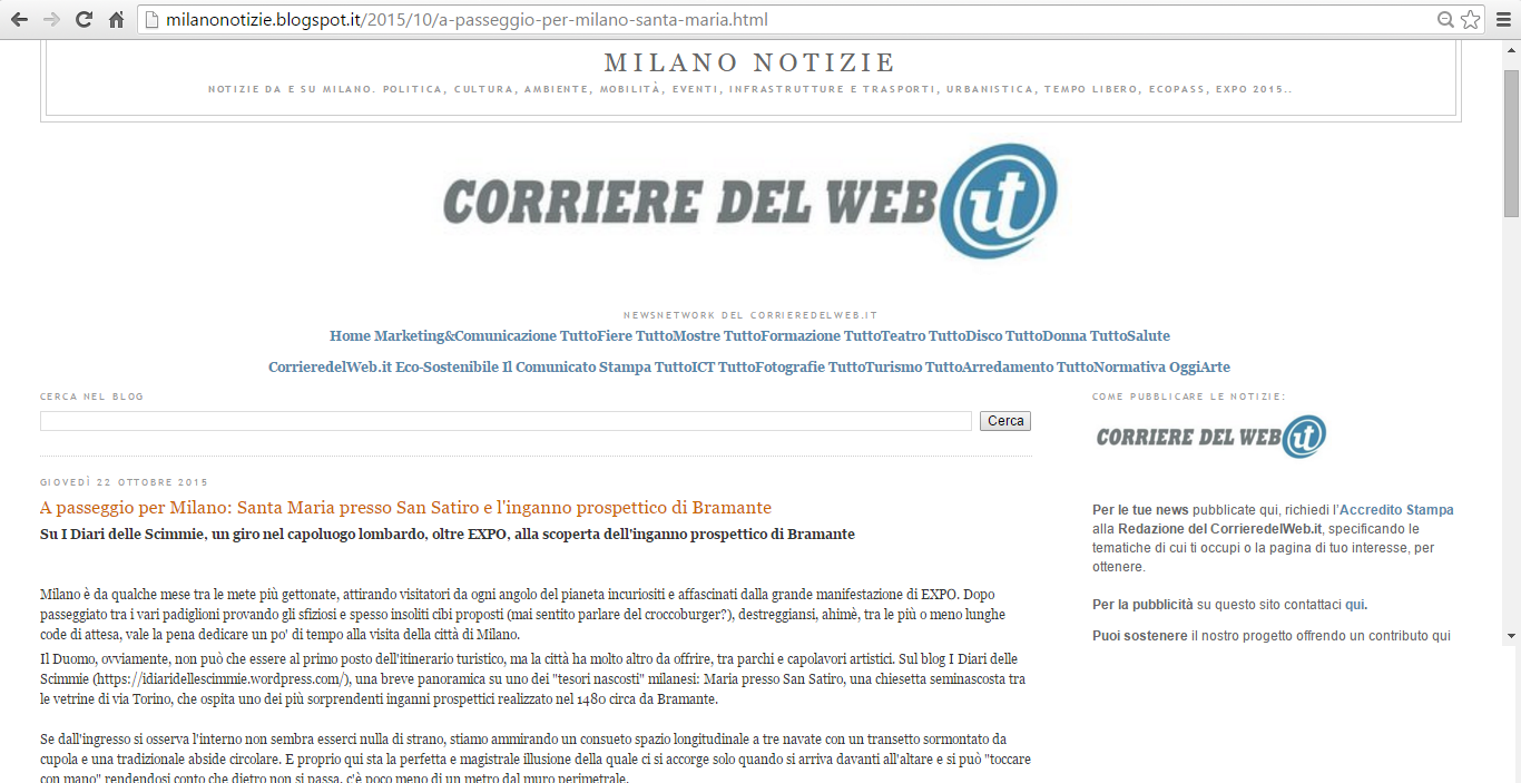 I Diari delle Scimmie su Milano Notizie del 22 ottobre
