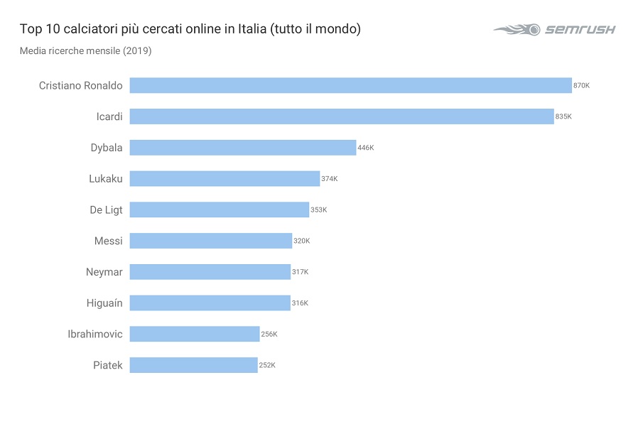 Calciatori e club: ecco quelli che interessano di più agli utenti italiani