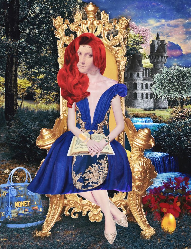 Mi sono ritrovata ad una festa alquanto lisergica, ospitata dalla combriccola dei Cibi Killer. Ho gradito molto la musica, suonata sul piano a quattro mani da Mozart e Ray Charles. Ero, tuttavia, fortemente inquietata dalla presenza del bambino dei popcorn Poppy che ho sempre immaginato come un cattivissimo serial killer. Seguendo la scia di popcorn del suo passaggio ho infatti notato una boccetta di veleno, lo stesso dei cibi preconfezionati. A quanto pare, ne aveva appena aggiunta una dose ai Macarons di Maria Antonietta. La regina, però, con i suoi coloranti laser rosali ha resi appetibili (ma solo alla vista). Correva voce che la Signora Star, mentre preparava i suoi dadi ricchi di sostanza chimiche, avesse avuto un incidente con le varia fialette intossicanti che usa generalmente come ingredienti per i suoi prodotti. Tale pasticcio le aveva fatto diventare i capelli rosa… che, nonostante tutto, le donavano! L’estetica è una trappola. Questo collage è una forma di protesta contro i cibi industriali, i coloranti, le glasse di zucchero, i conservanti e gli additivi chimici.