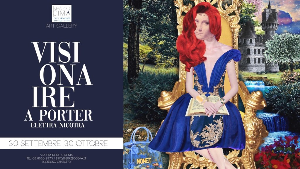 L’arte dell’eclettica artista siciliana Elektra Nicotra arriva nella Capitale. Fino al 30 ottobre, Spaziocima, la galleria di cultura creativa nel quartiere Coppedè, ospita Visionaire à porter, due degli originali collage realizzati dall’artista, che nei suoi lavori unisce tecnologia, arte, moda e cultura moderna.